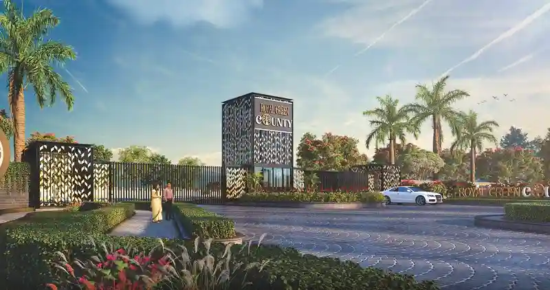 The project is by Royal Green Realty, a developer known for plotted developments and residential communities in the region.
